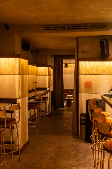 Inspirado en los bares clandestinos de la década de 1920, el proyecto reimagina la geometría Art Deco con una mirada moderna. Un imponente bar de latón se convierte en el centro de todo, funcionando como protagonista y escenario. A su alrededor, tejidos iluminados y acabados cálidos equilibran latón, madera, concreto y tela, creando el ambiente perfecto para una noche que transita sin esfuerzo entre conversaciones tranquilas y música vibrante.