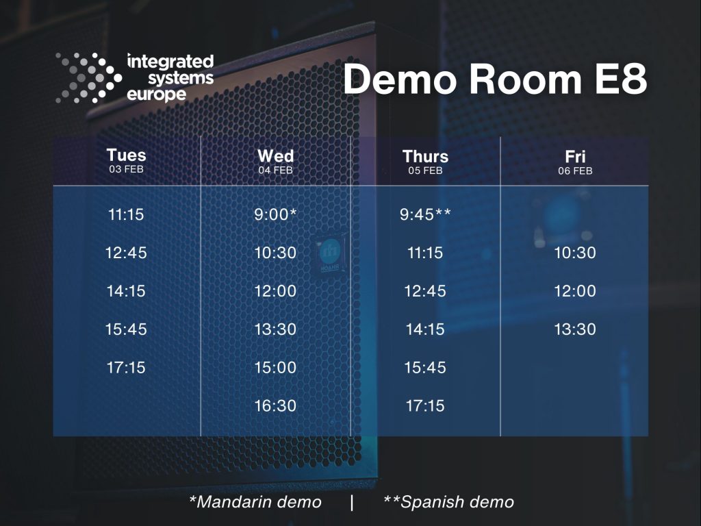- Demo Room E8: Una experiencia sensorial que simula un aeropuerto, un club de salsa y un centro de artes escénicas utilizando acústica activa de Amadeus Acoustics.