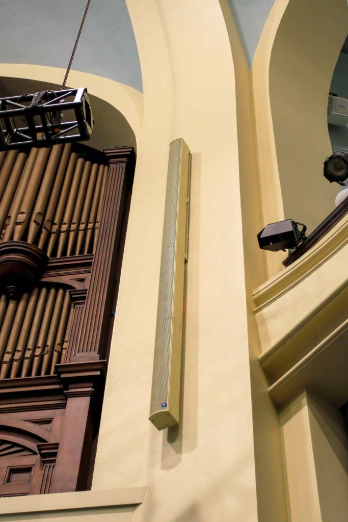 Restricciones estéticas severas. En muchos espacios de culto, la instalación visible de hardware es inaceptable. Los integradores necesitan soluciones que suenen perfectamente desde posiciones discretas, sin la proliferación de bocinas colgantes o sistemas distribuidos complejos.